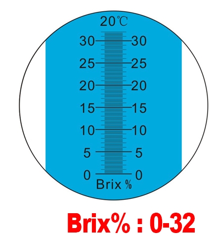 Specification: Model RHB-32ATC for 0-32% Brix and 0.2% resolution with +/-0.2% accuracy; Temperature compensated for 0-30°C. Typical ranges: