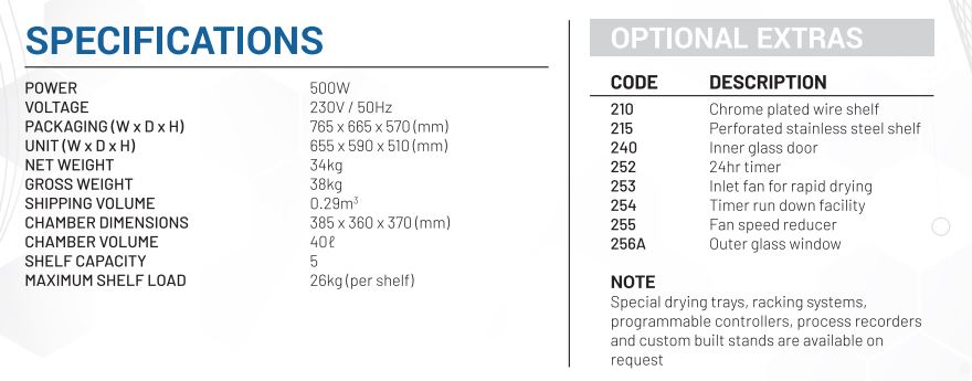 Digital Incubator with 500W power. Chamber size is 40 Liters. Assembled on order with a 2 to 4 week lead time.