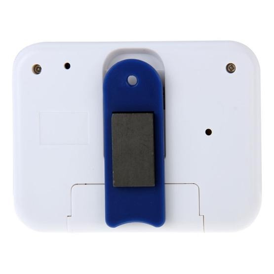 Electronic timer and clock with 4 channels & alarm. This digital timer for laboratory & kitchen use has a stand for desktop use and a magnet to place it on a fridge. It has count down and count up function & clock.