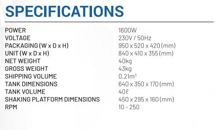 * Easily removable shaking carriage for loading outside of the bath and for clearing purposes.