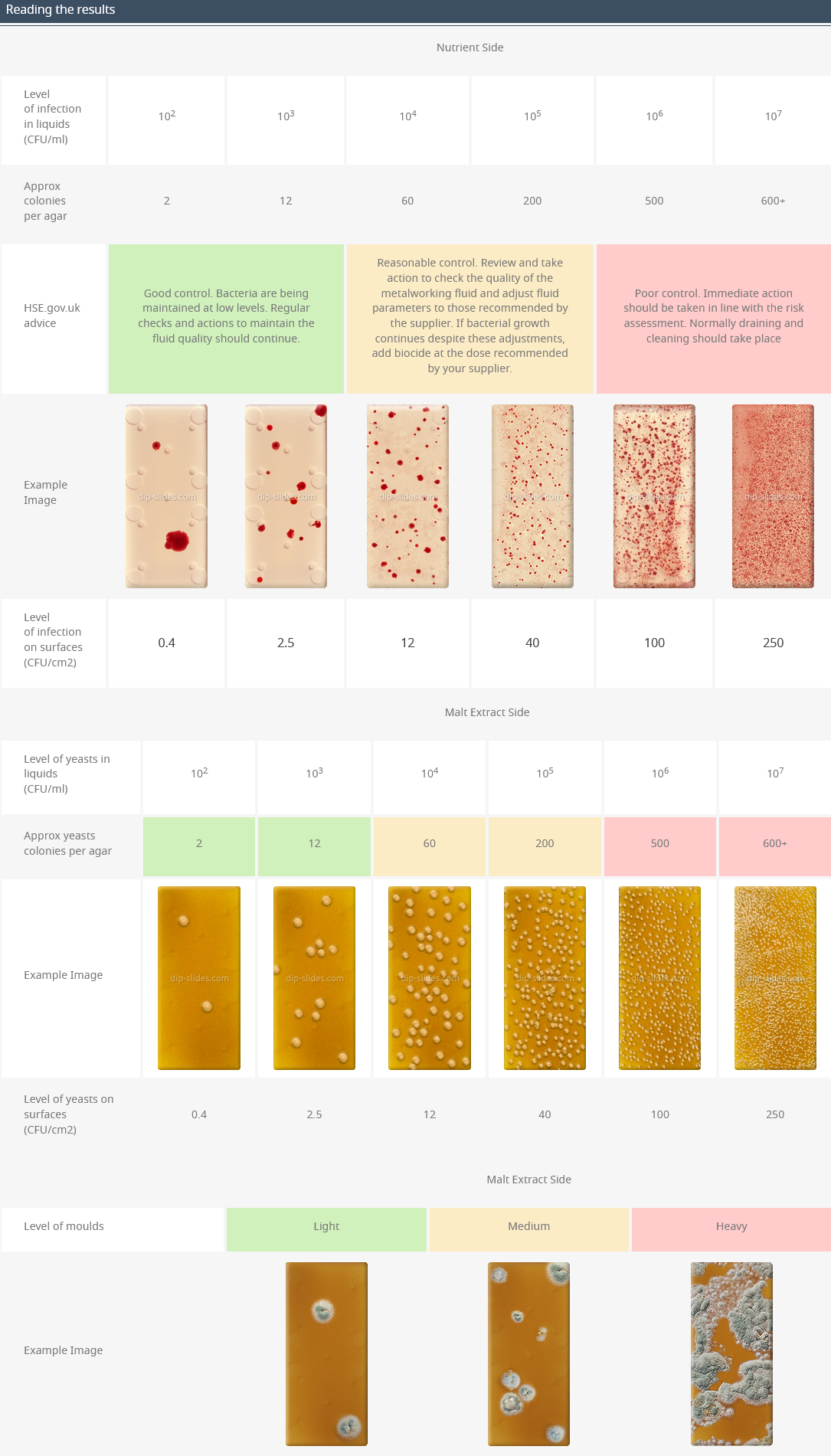- 2 x boxes of Metal Cutting Fluid dipslides – MCBTM2 (bacteria, yeasts and moulds test), 20 dipslides in total.